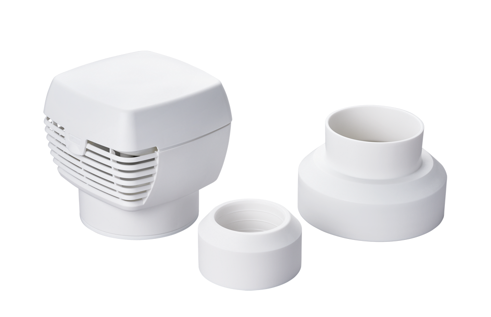 The Vieser One air valve DN50/75/110 is meant for use alongside a vent pipe that vents directly outdoors.